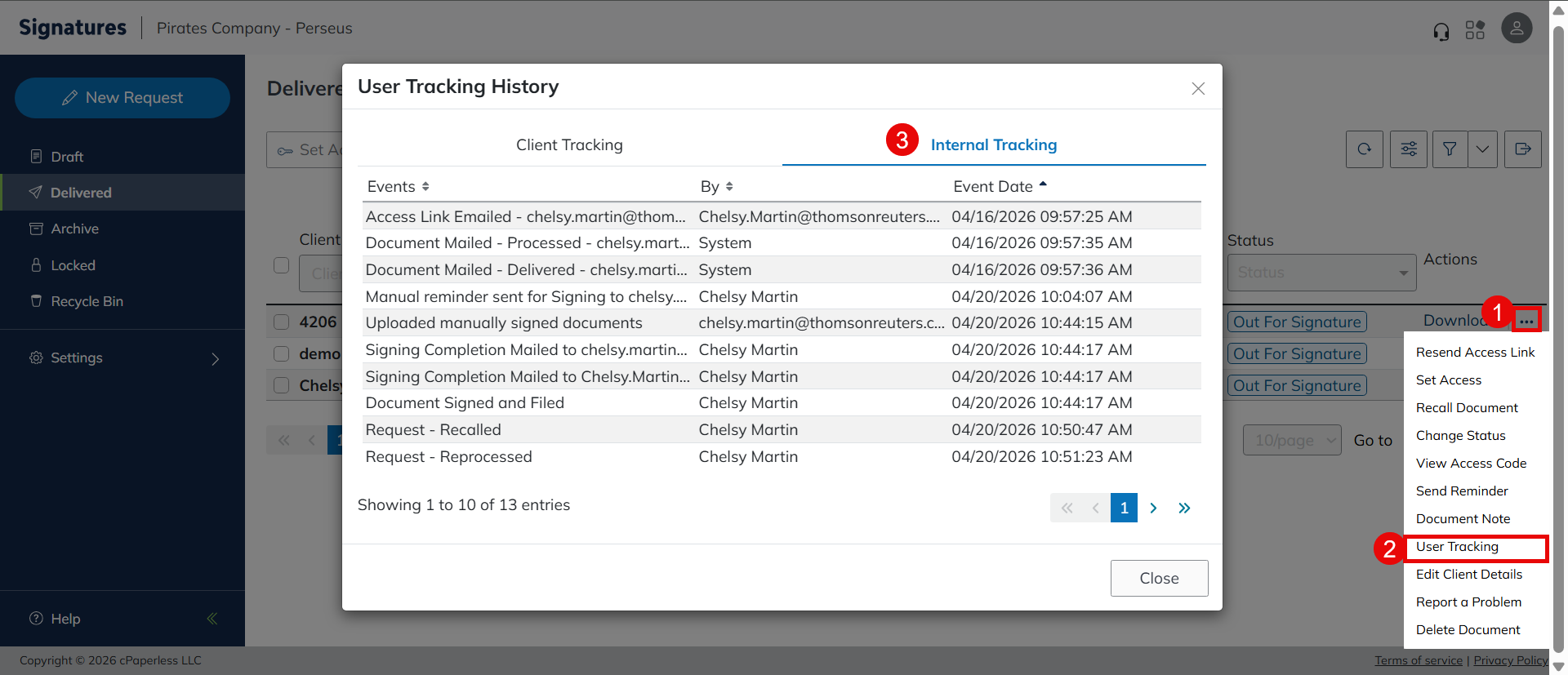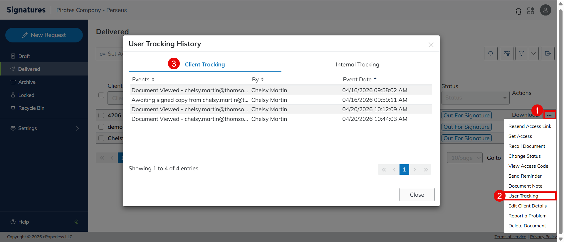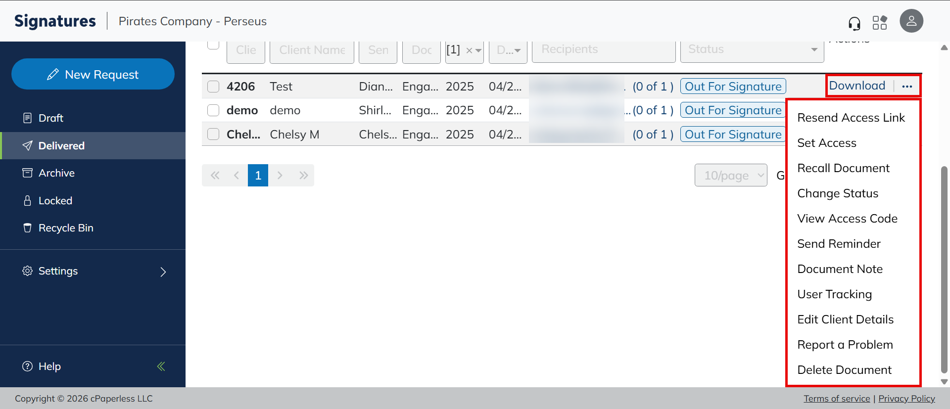 The purpose of all of the Action Menu options in the Delivered section, as well as when and how to use them are outlined below. This reporting section displays all documents that have been delivered to the client but have not been archived.