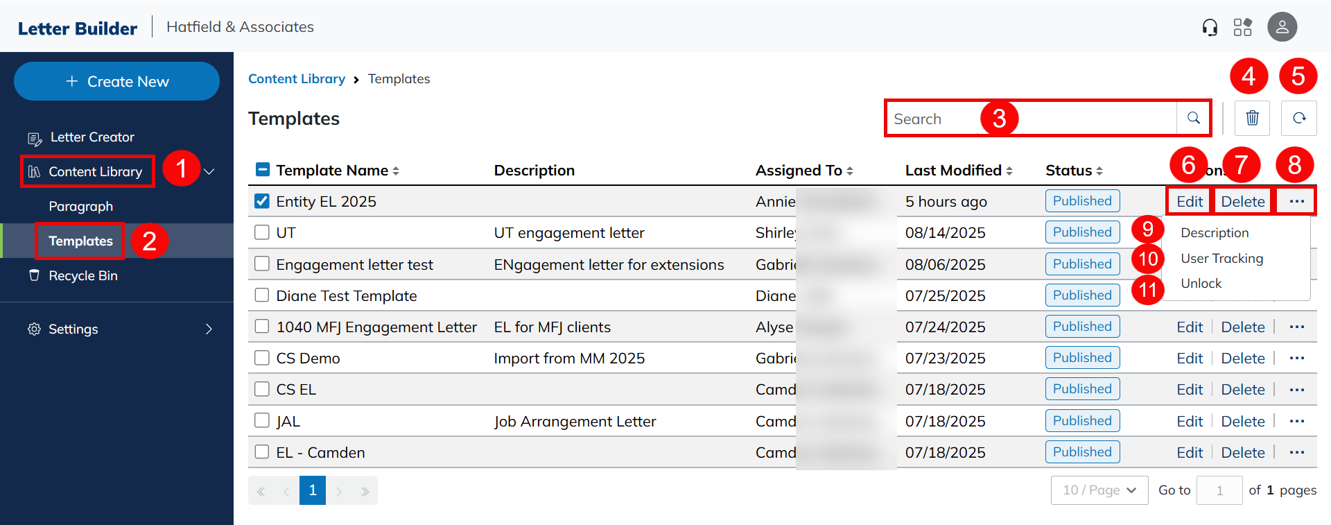 - Click the Trash Can icon to delete selected templates.
