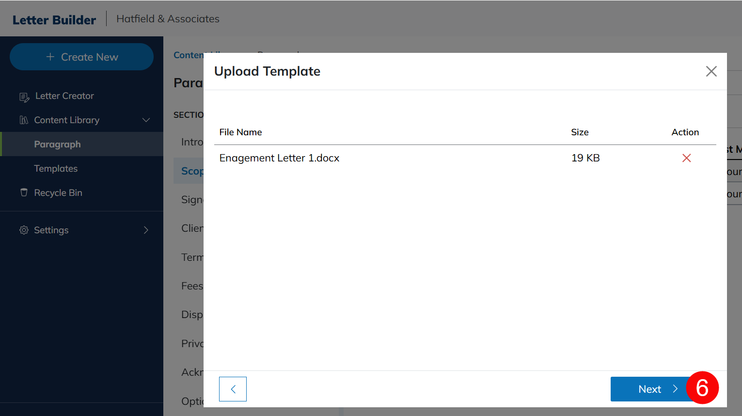 Upload a .docx template file.