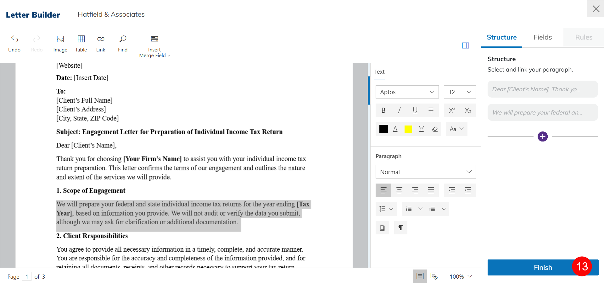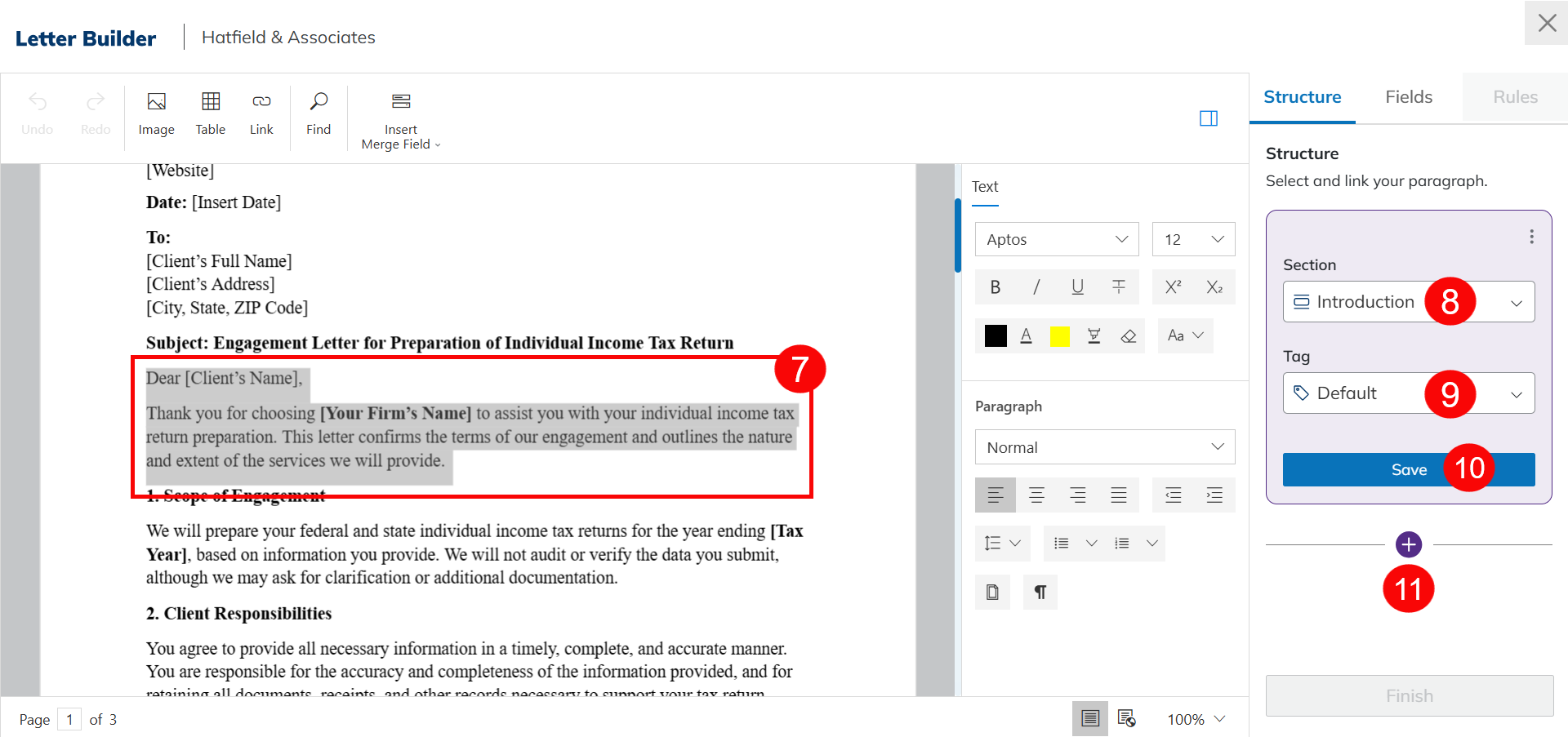 - Click Finish to save the paragraph content.