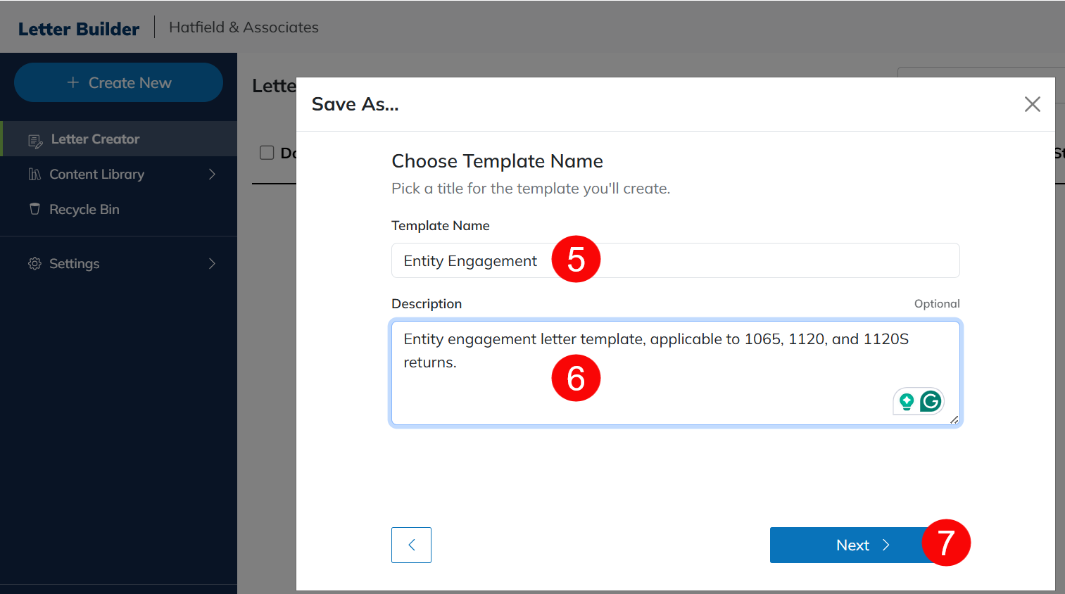 - Enter a Template Name.
