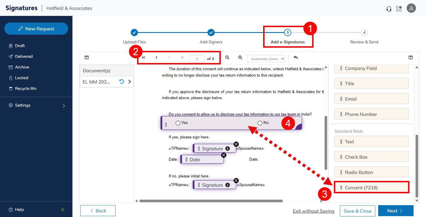 - Navigate to the Add e-Signatures section.