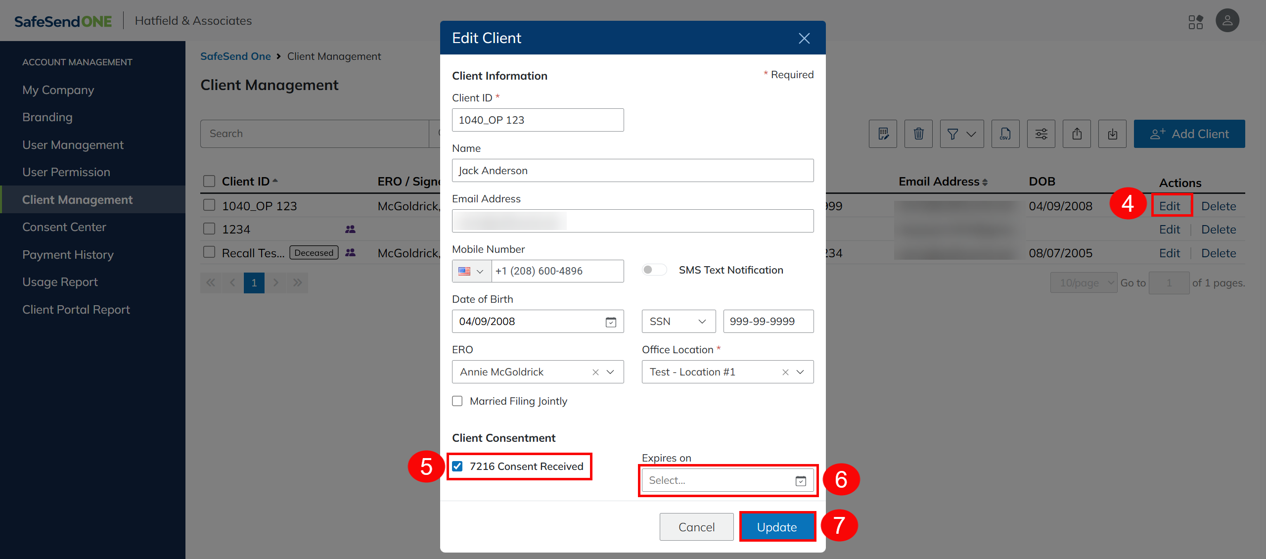 This consent status can also be updated manually in the Client Management dashboard.