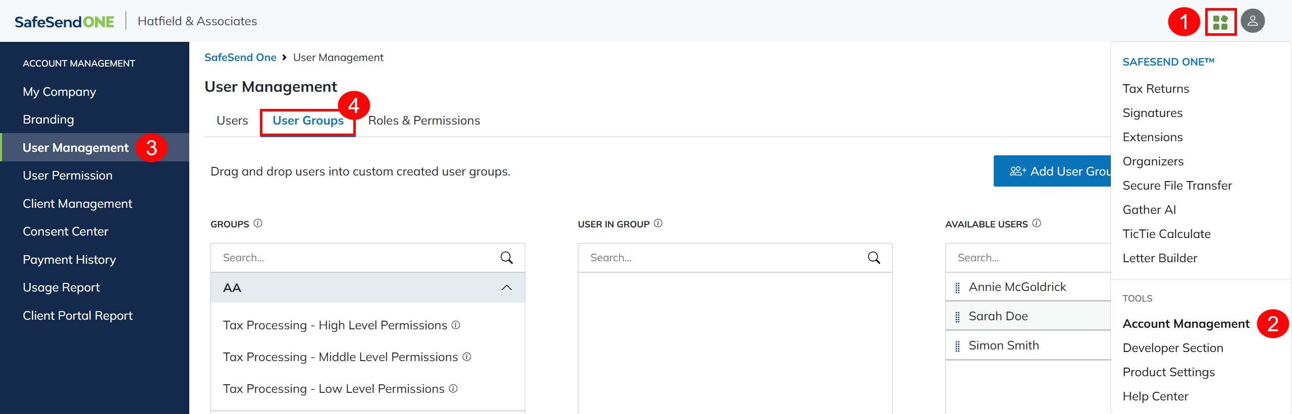 - Click the User Groups tab.