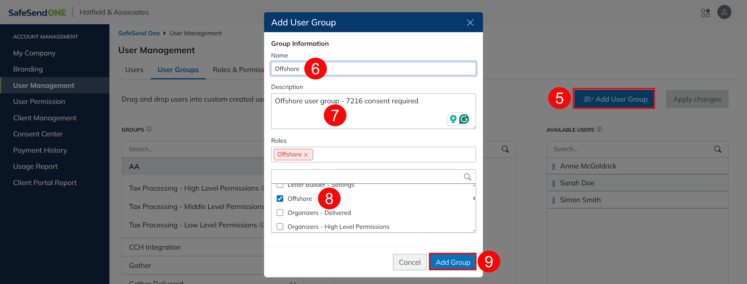 - Click Add User Group.