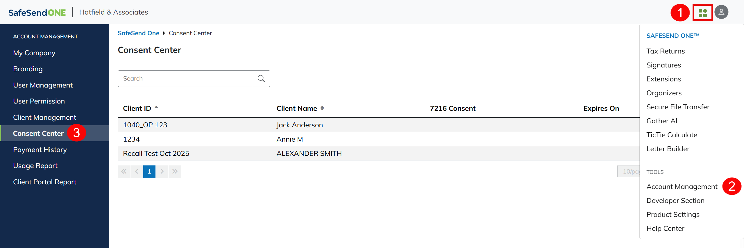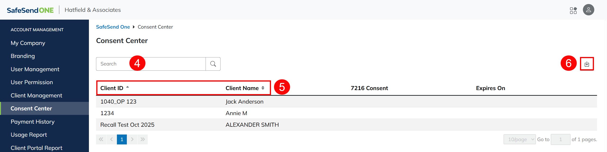 The Consent Center allows you to review the current consent status for clients that exist in your Client Management dashboard.